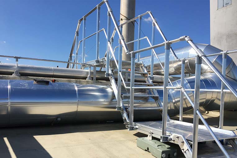 The Genesi Allukemi Step gangways and overpass walkways are modular systems that create safe walkways on roofs and other structures to guide operators via routes planned following the completion of a risk assessment