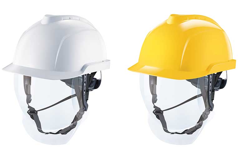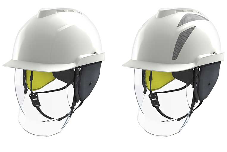 The V-Gard 950 non-vented protective cap is a low-profile safety helmet an integrated face shield certified for protection against arc flash, chemical splash, ultra-violet radiation or molten metal splash.